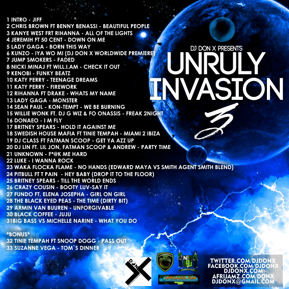 For Split up version email – djdonx@gmail.com Subject – “Unruly Invasion Vol 3”
